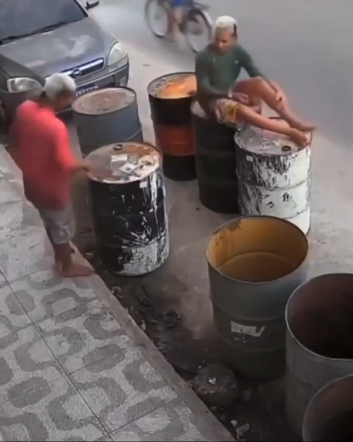 An Empty Oil Drum Exploded On The Face Of Two Stupid Brazilian Men