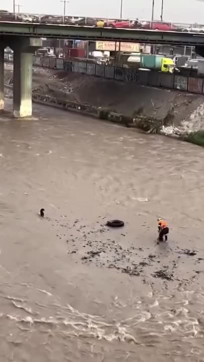 A Peruvian Police Being Swept Away By Rapid Flow Of Rimac River While Attemping To Save A Dog